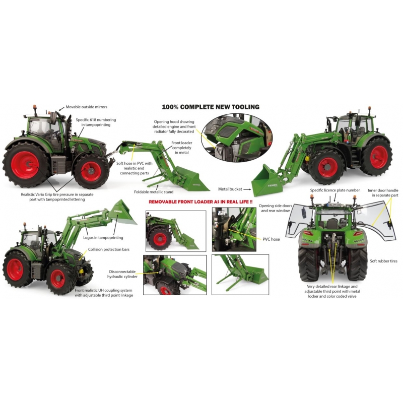 1:32 scale Fendt 618 Vario with Front Loader die-cast model by Universal Hobbies. Suitable for age 14+.